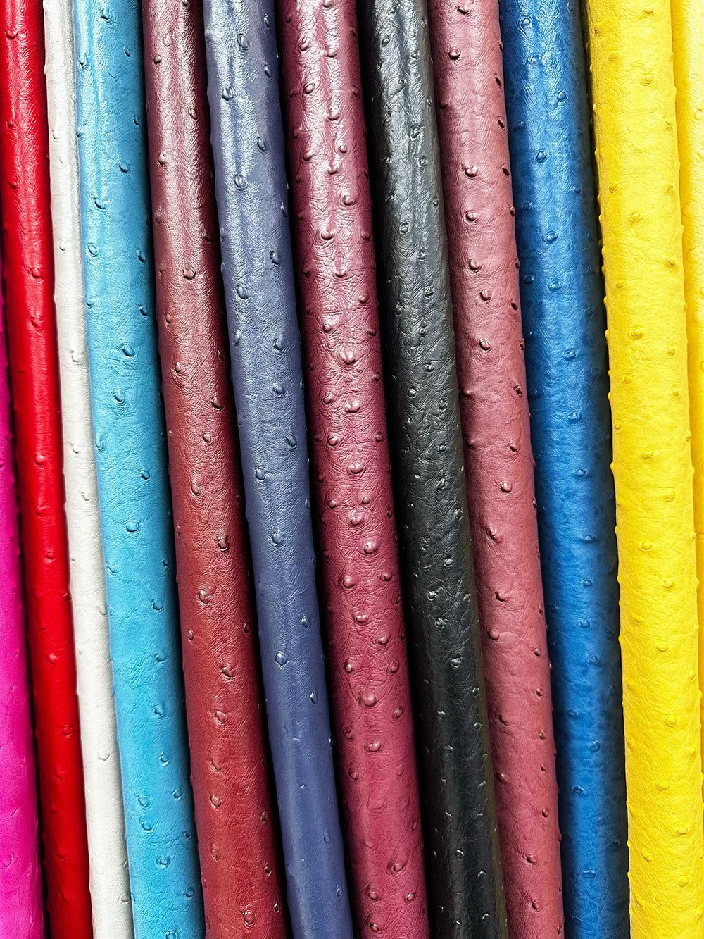加工工艺:采用高温高压压纹工艺,复制天然鸵鸟皮不规则的纹理,打造高端质感,性价比极高。