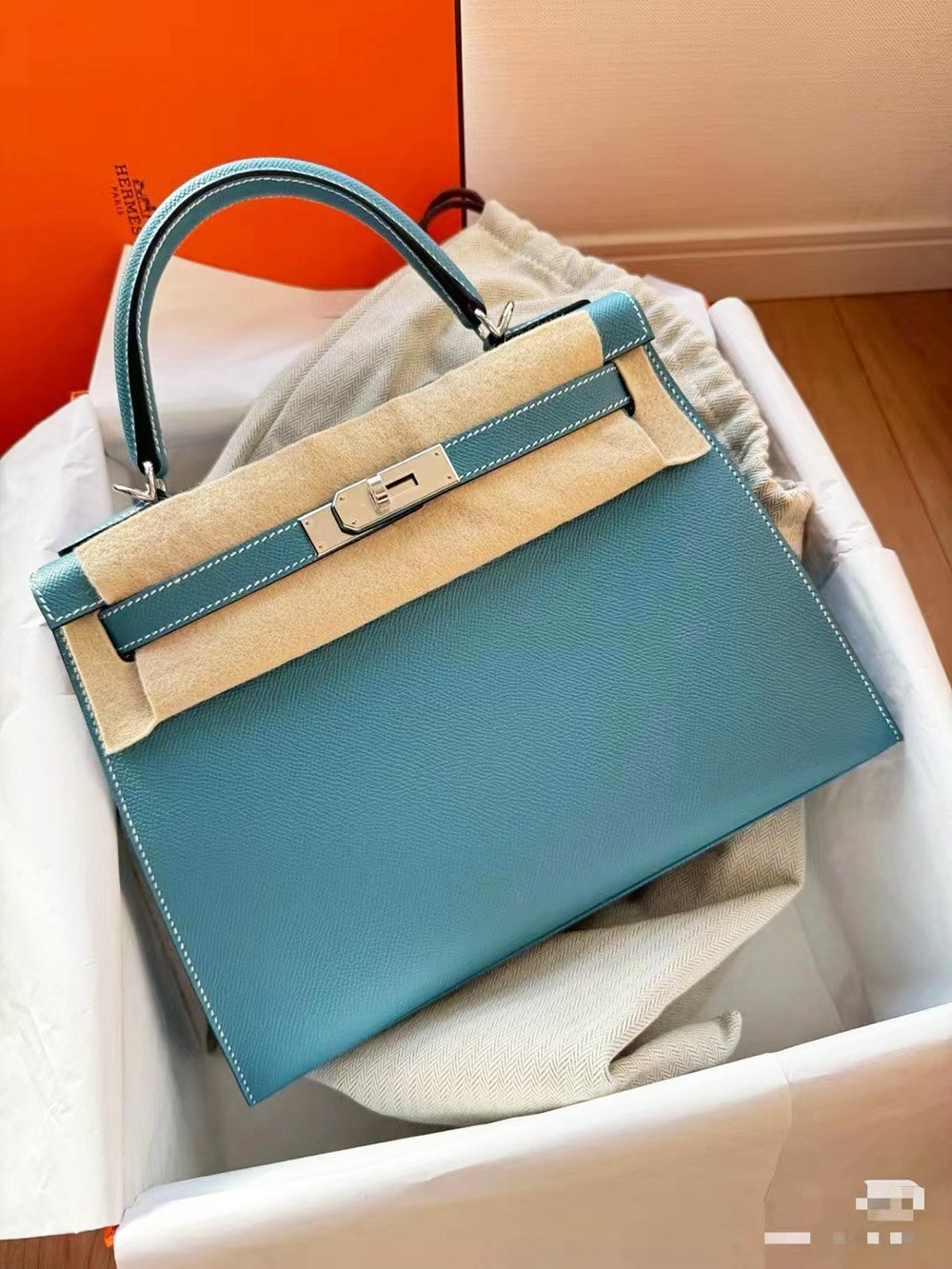 材质故事/特点:爱马仕 Epsom 棕榈纹:清爽时尚,低调而坚韧,内敛却不失力量,越用越显奢华。Epsom 皮革没有耀眼的光泽或浮夸的质感;它属于意志坚定、行事稳健、不喜张扬的人士。