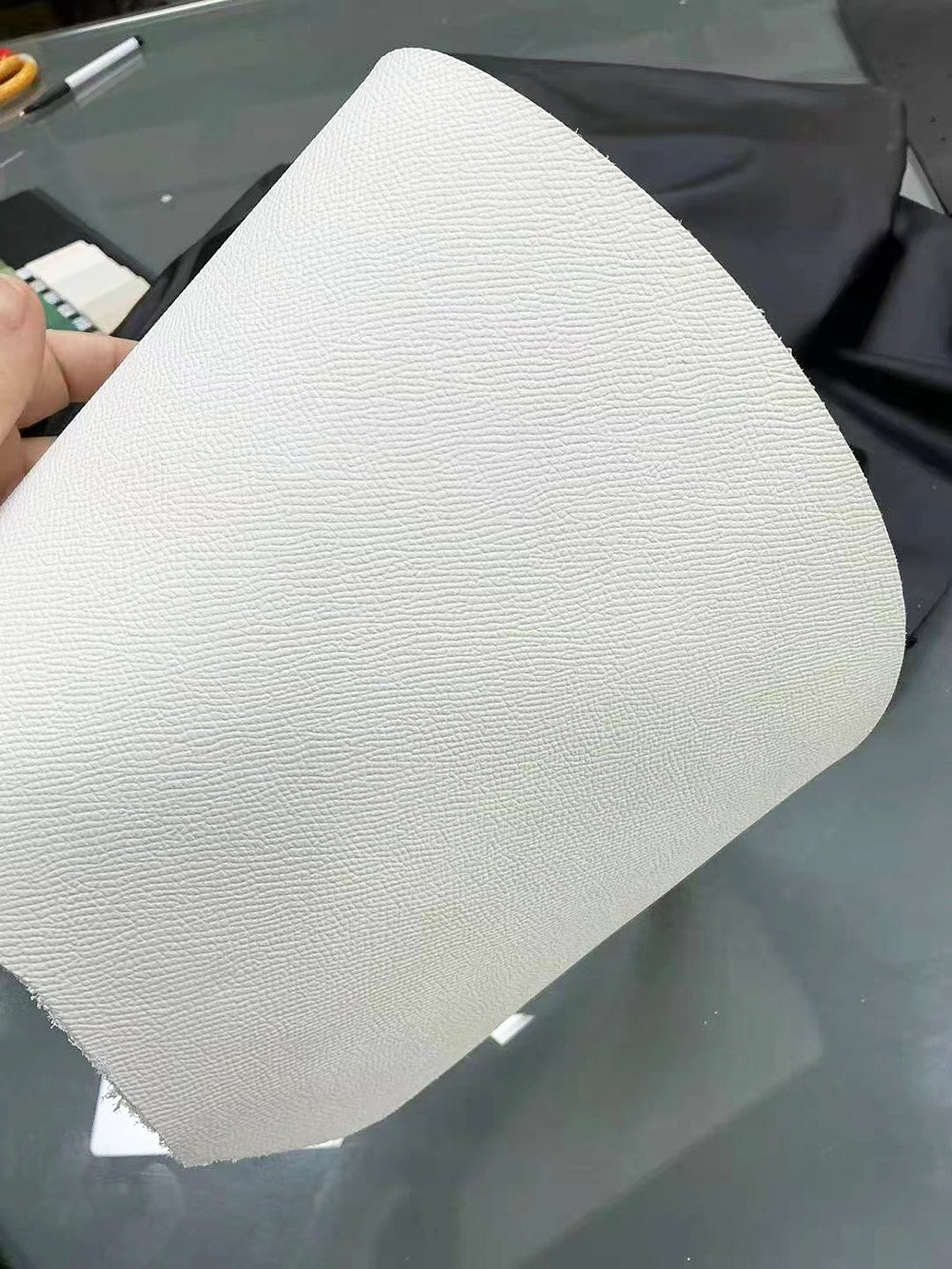 纹理特征:表面呈现均匀、细腻、清晰的交错掌纹,如同手的纹路,营造出强烈的立体感和干净利落的视觉效果。