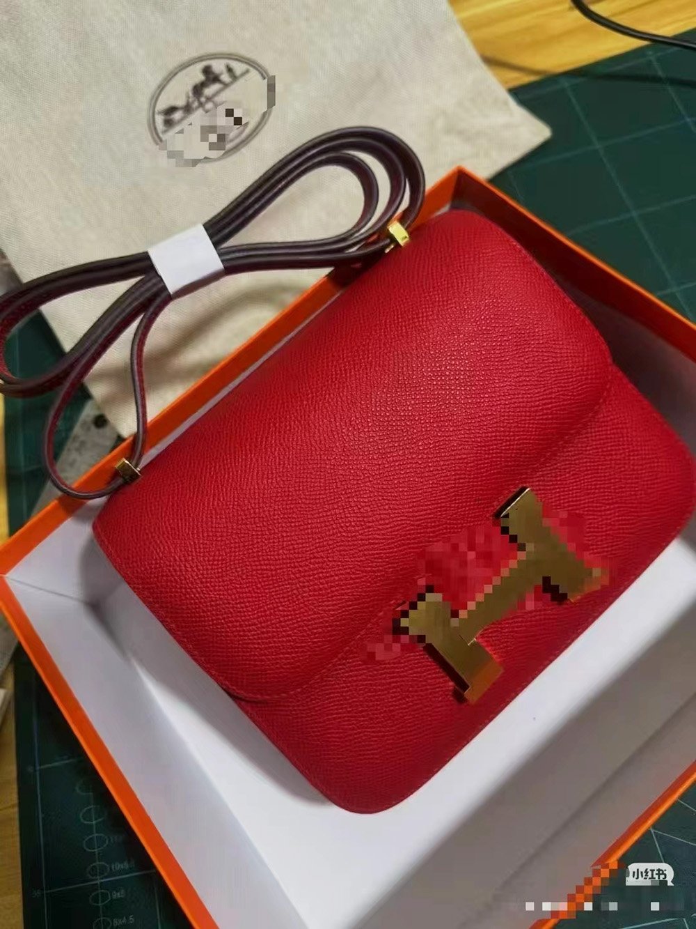 加工工艺:爱马仕Epsom棕榈纹小牛皮,经精密热压成型,色泽牢固,半哑光质感,高度耐磨,挺括不变形,压纹工艺,无拼接或拼接痕迹。