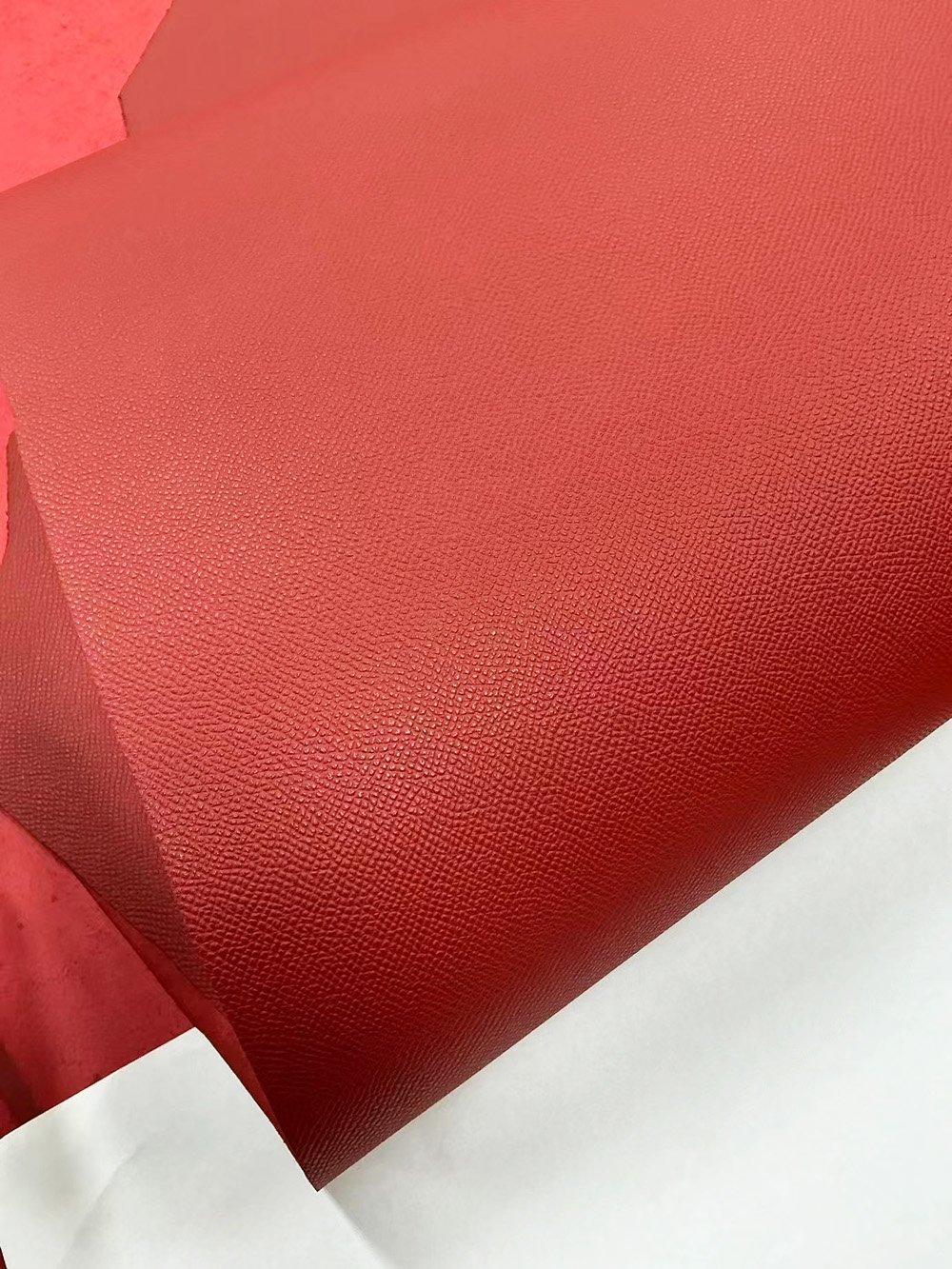 工艺类型:压花皮革,采用热压工艺压印在头层/二层牛皮上,从而形成均匀的纹理和稳定的批量生产。